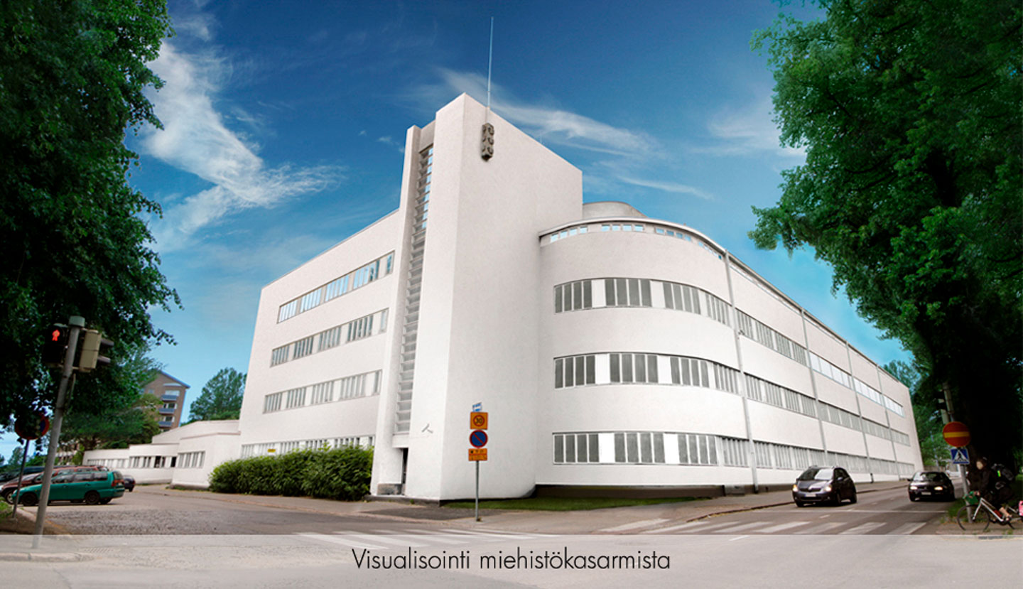 Miehistökasarmiin toteutetaan alueen käyttötarkoitusmuutoksen kautta ikääntyvien hoivakoti, sekä hoivakodin oheis- ja kuntoutustiloja. Rakennuksen maantasokerrokseen tulee lisäksi toimisto- ja liiketiloja sekä ravintola. Aikaisemmin autohallina toiminut tila muutetaan vähittäiskaupaksi ja korjauspaja asunnoiksi. Autohallin alla olevaa paikoitushallia laajennetaan, jotta paikoitus pystytään järjestämään kokonaisuudessaan maan alle. Kasarmialueen ensimmäisen vaiheen on arvioitu valmistuvan keväällä 2016.